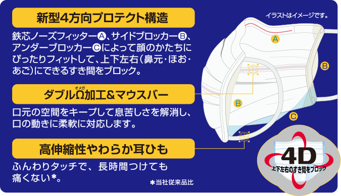 アンダーブロッカーを広げ、あごに合わせてマスクを着用します。
