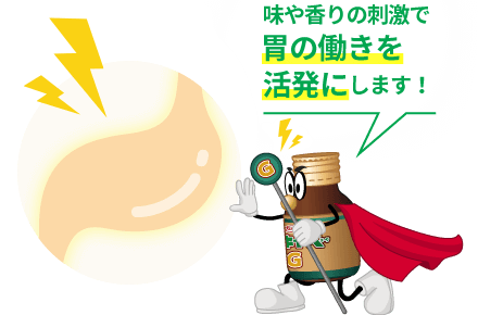 健胃生薬とは、辛味や苦味といった味や独特の芳香で食欲を高め、胃腸の働きを活発にして、悪酔い・二日酔のむかつき、飲み過ぎ、食べ過ぎなどの症状を改善するものです。