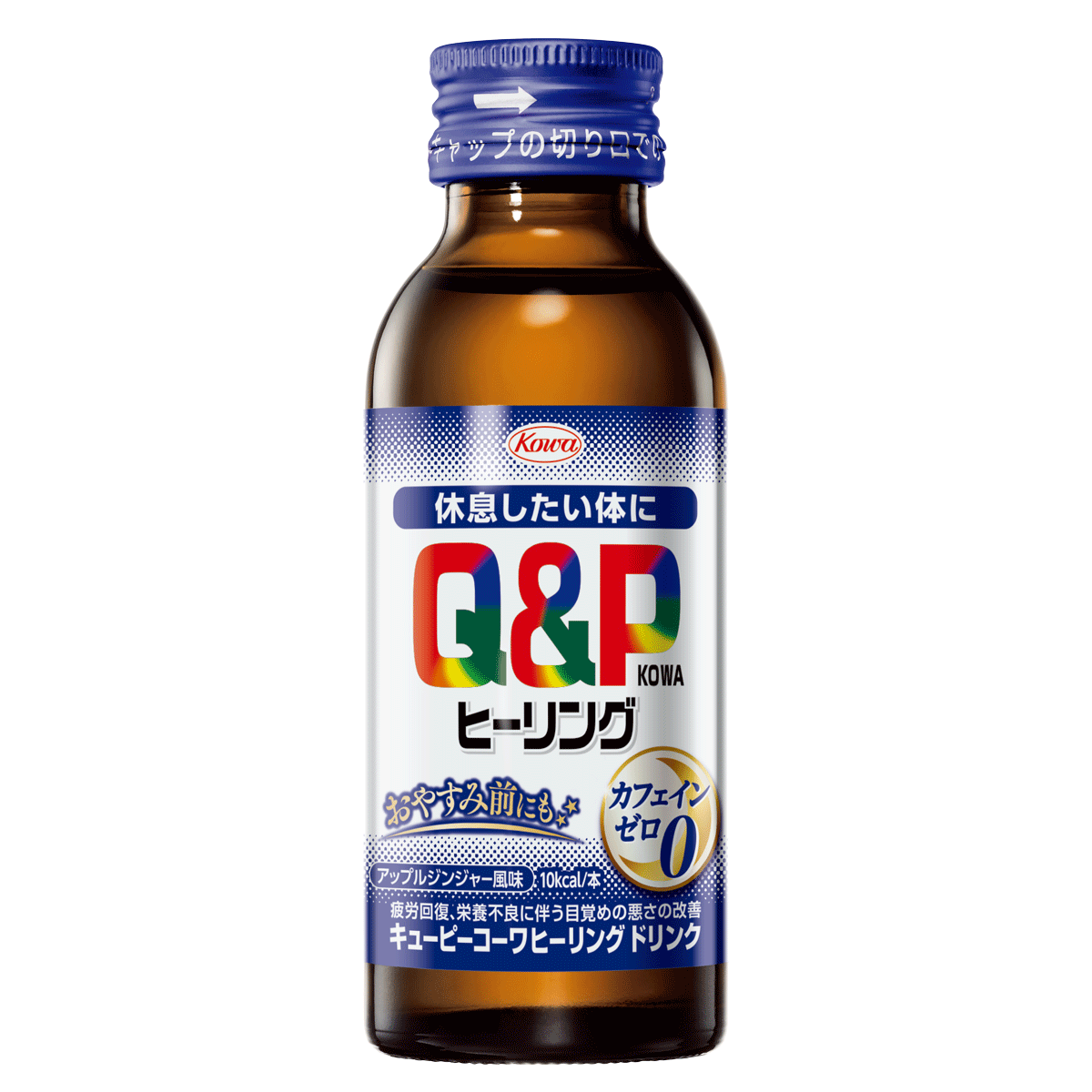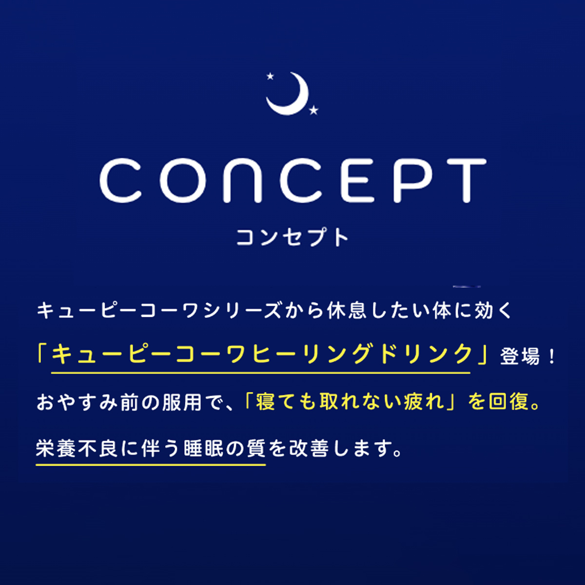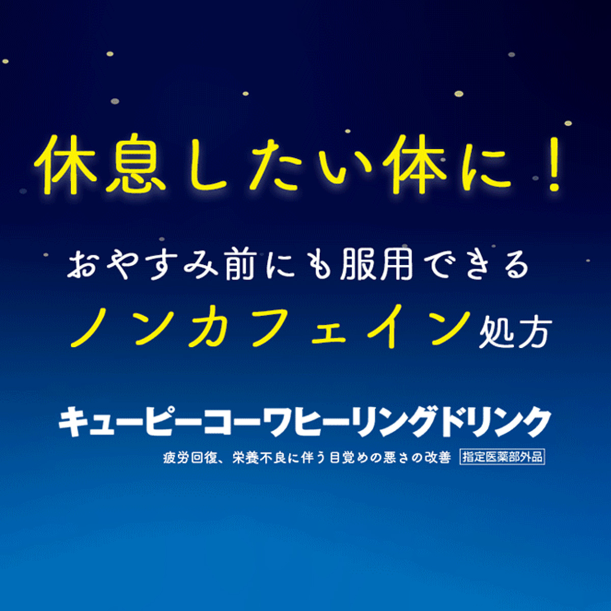 キューピーコーワヒーリングドリンクは、おやすみ前に服用して疲労回復したい方のために、カフェインゼロ。