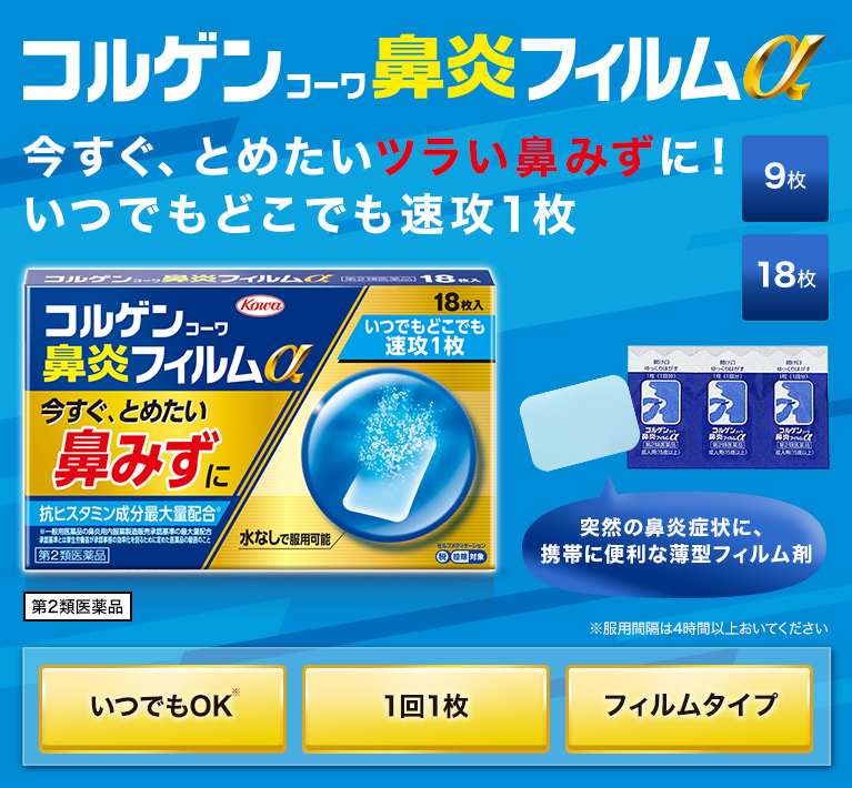 急性鼻炎,アレルギー性鼻炎又は副鼻腔炎による次の諸症状の緩和:くしゃみ,鼻みず(鼻汁過多),鼻づまり,なみだ目,のどの痛み,頭重(頭が重い)