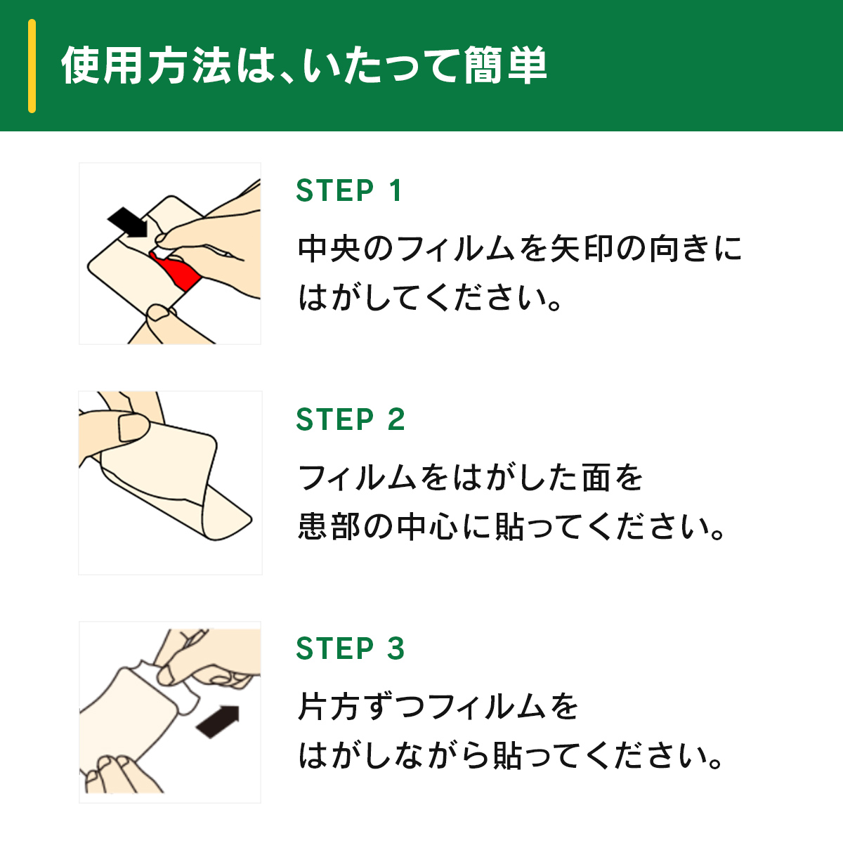 STEP 2フィルムをはがした面を患部の中心に貼ってください。