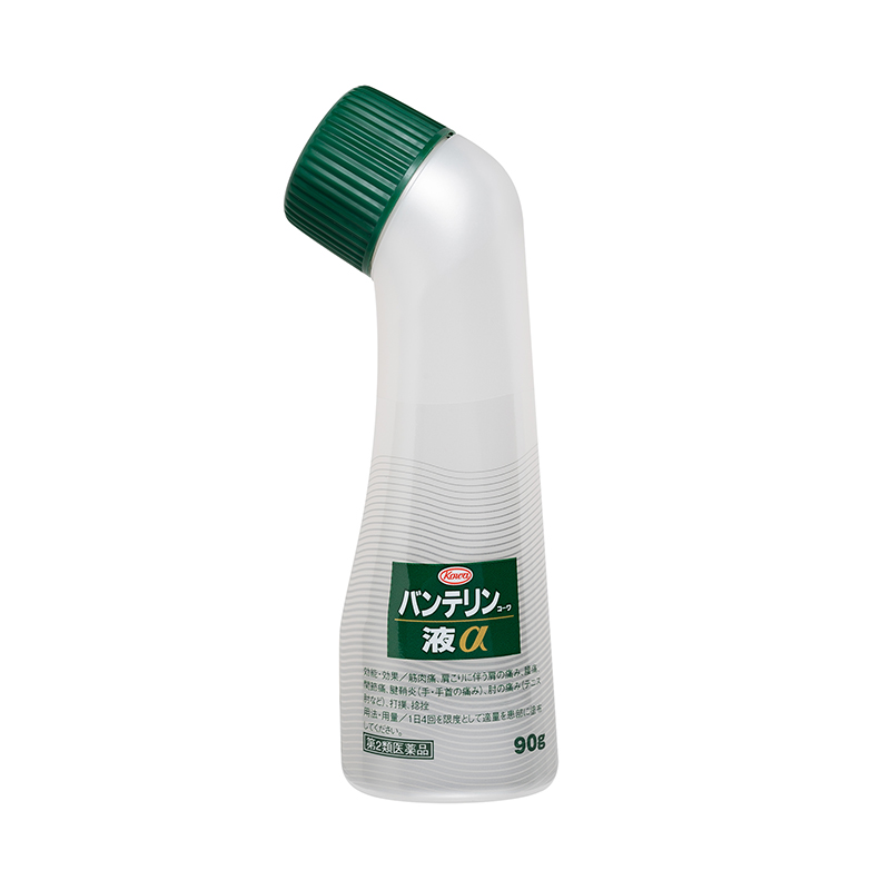 バンテリンコーワ液αは,筋肉や関節の痛みをとるトリプル鎮痛成分(インドメタシン,l-メントール,アルニカチンキ)を配合した局所浸透薬です。