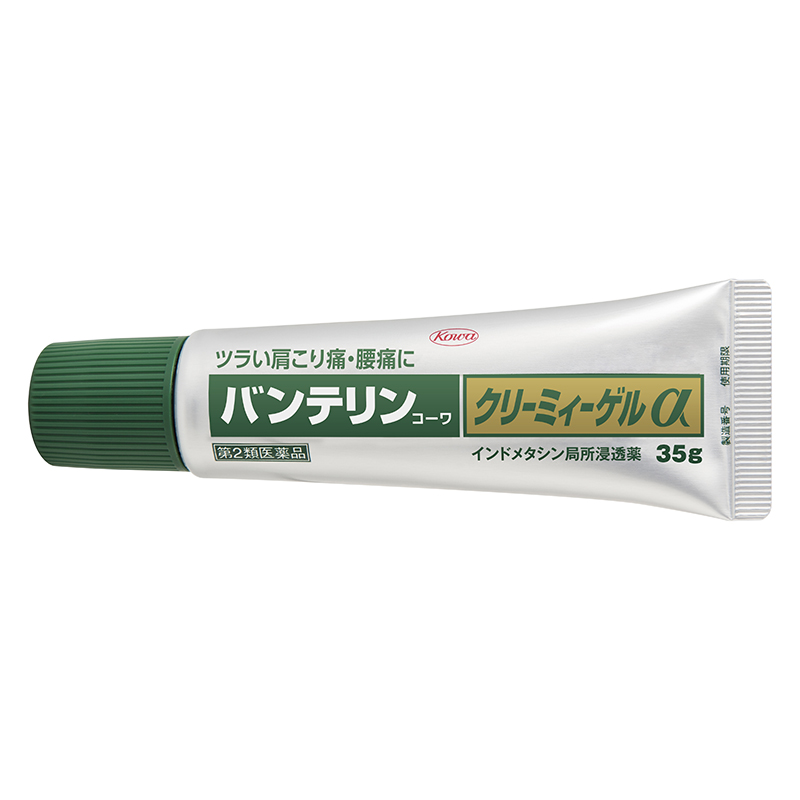 バンテリンコーワクリーミィーゲルαは,筋肉や関節の痛みをとるトリプル鎮痛成分(インドメタシン,l-メントール,アルニカチンキ)を配合し,興和の研究陣が独自に開発した製剤です。 (1)痛みのある部位に塗擦しますと,効きめの成分が浸透し始めます。 (2)患部の痛みをジカにとってくれます。 皮膚表面に塗擦しますと,薬剤が浸透しますので,使った後はサラッとしており,手もベタつかず,ニオイも気になりません。