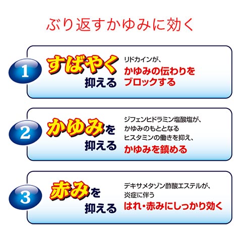 ぶり返すかゆみに効く ・すばやく抑える ・かゆみを抑える ・赤みを抑える