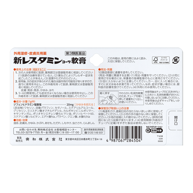 2.使用後,次の症状があらわれた場合は副作用の可能性がありますので,直ちに使用を中止し,この外箱を持って医師,薬剤師又は登録販売者に相談してください