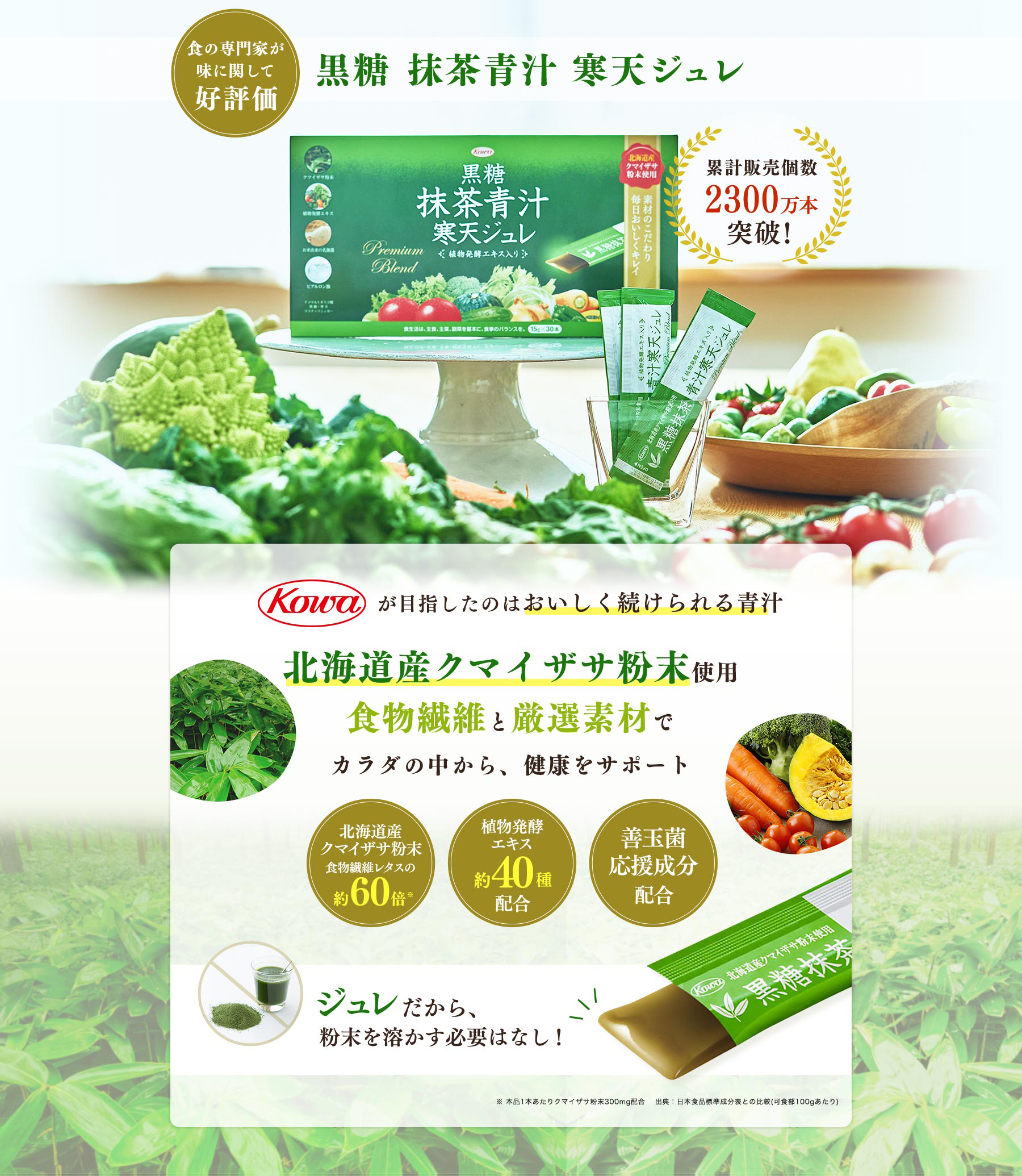 身内から”黒糖抹茶青汁寒天ジュレ”を頂き試してみました。食べ始めから食べ易く美味しく頂けました。