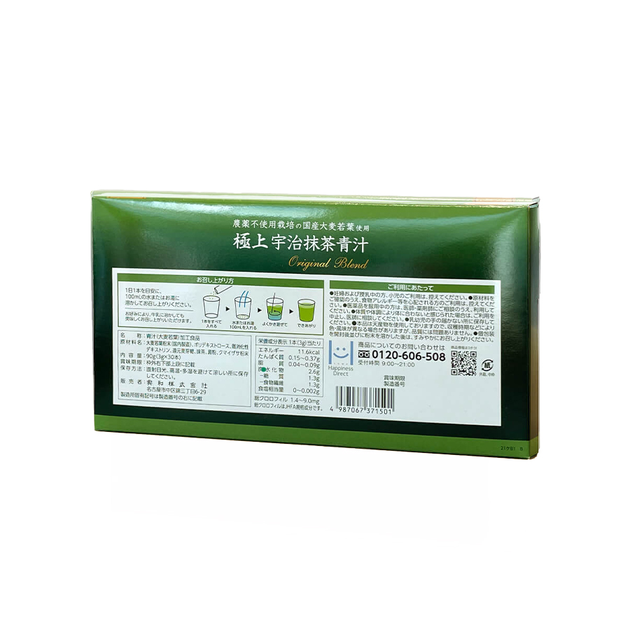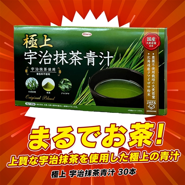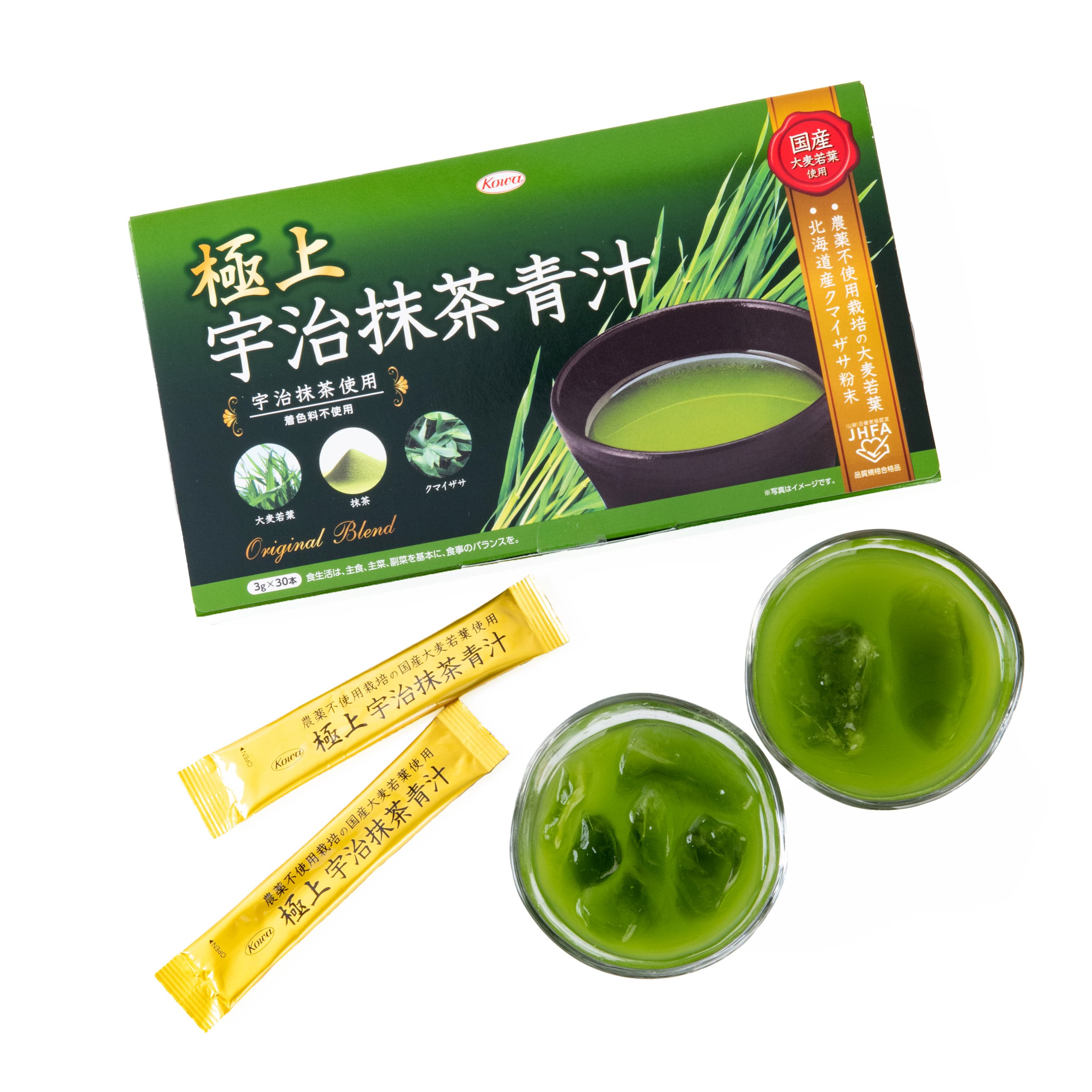 ■原材料名:大麦若葉粉末(国内製造)、ポリデキストロース、難消化性デキストリン、還元麦芽糖、抹茶、澱粉、クマイザサ粉末