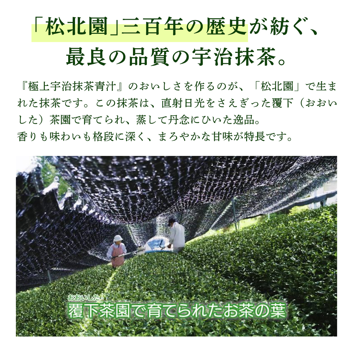 『極上宇治抹茶青汁』のおいしさを作るのが、「松北園」で生まれた抹茶です。