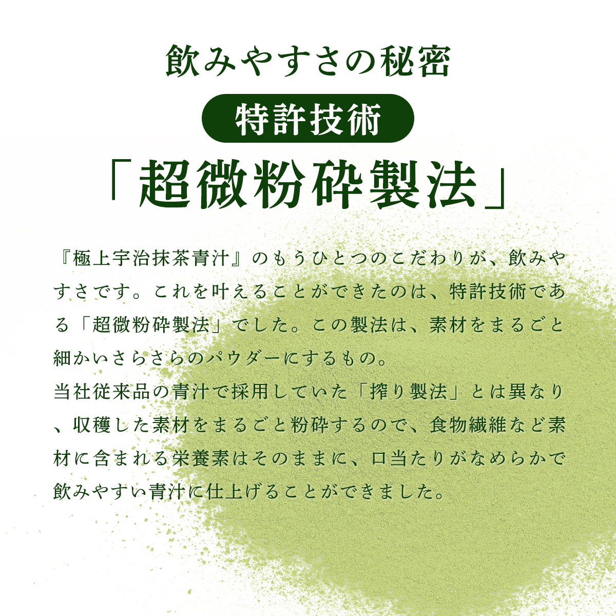 飲みやすさの秘密は、特許技術*「超微粉砕製法」