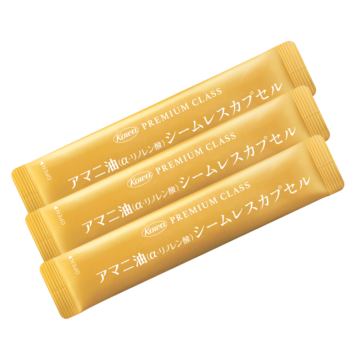 コーワの『アマニ油(α-リノレン酸)シームレスカプセル』は、1日2包で体に必要なオメガ3(n-3)系脂肪酸の2.2gを摂取できます。