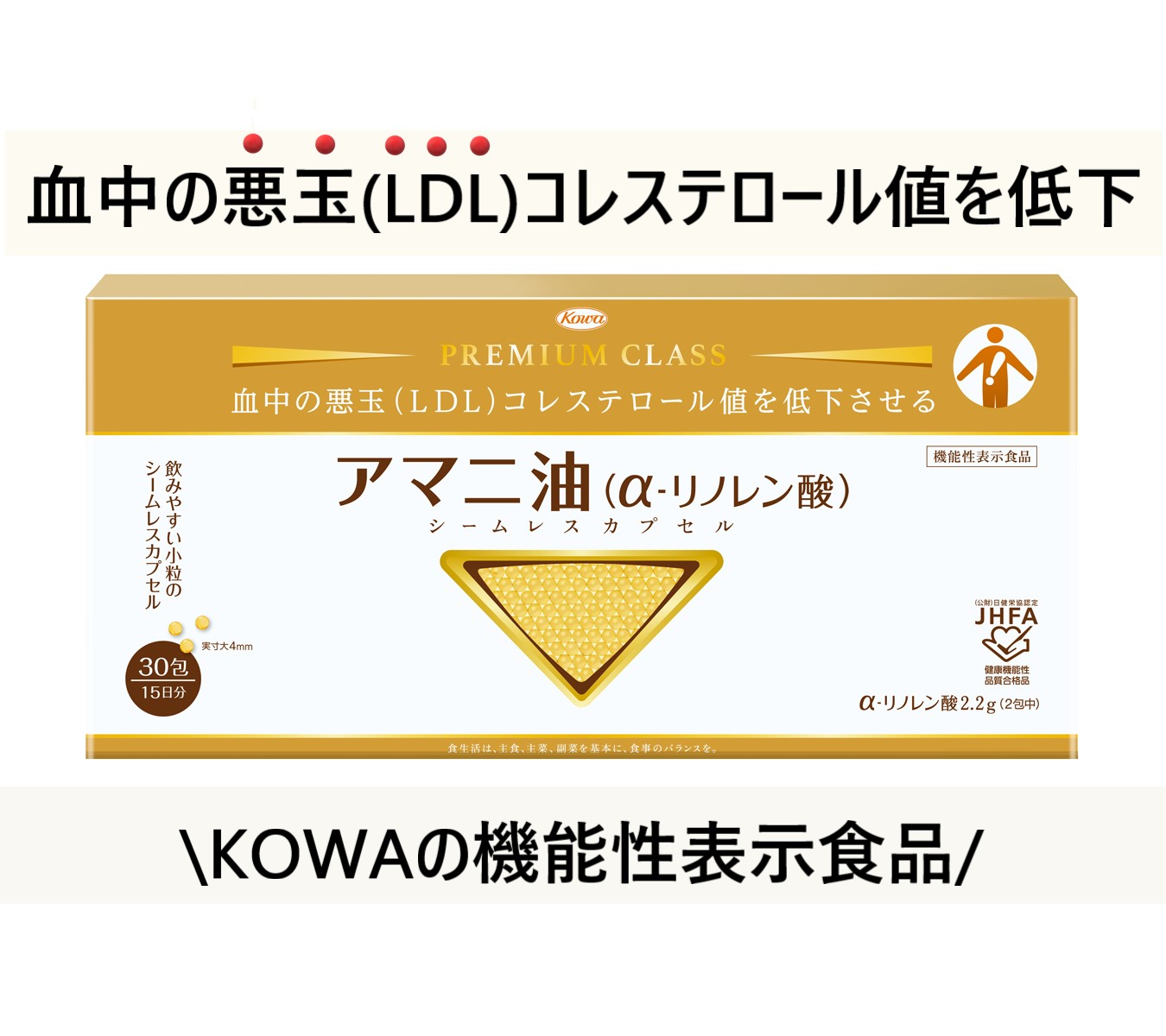 本品にはα-リノレン酸が含まれます。α-リノレン酸には血中の悪玉(LDL)コレステロール値を低下させる機能があることが報告されています。