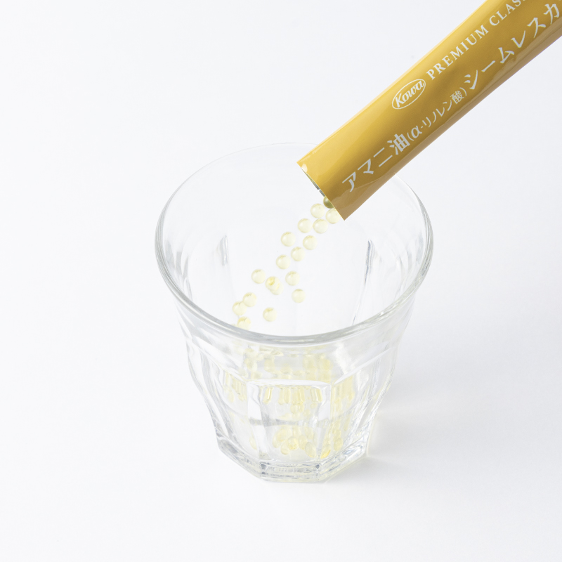 コーワの『アマニ油 シームレスカプセル』は、1日2包で体に必要なα-リノレン酸の2.2gを摂取できます。