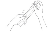 1.切り取り線にそって開封し、アプリケーターを半分程度引き出したら、ピストンをつかみ、袋の上からキャップを倒すようにして外します。