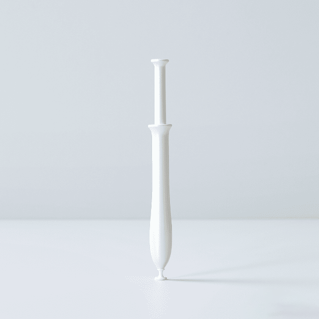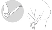 2.体をリラックスさせた状態でアプリケーターの先端から7cm程度まで腟に挿入したら、ピストンを押し、ジェルを注入します。その後、ゆっくり抜きます。