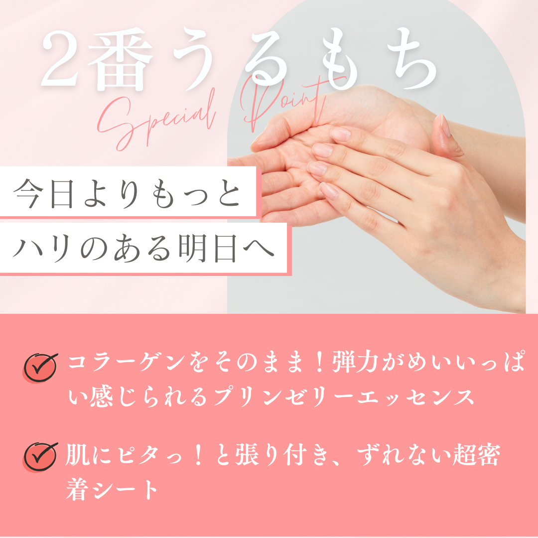 500ダルトンの超低分子コラーゲンと真珠エキスを配合し、弾力と美白を一度にケアできるコラーゲンシートマスク