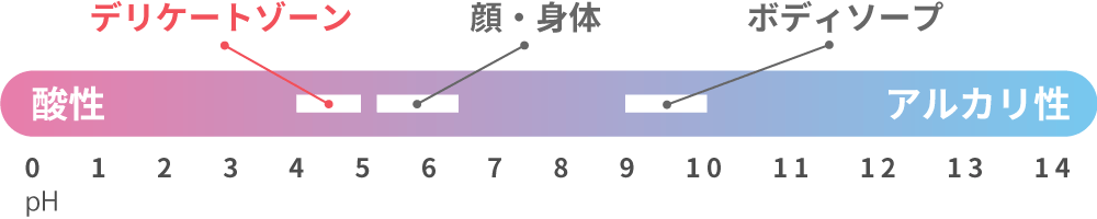 デリケートゾーンの肌は顔や身体と比べpH値が低く、弱酸性に保たれています。