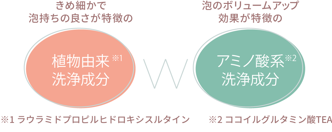 “もっちり濃密泡”を作り出すWの洗浄成分