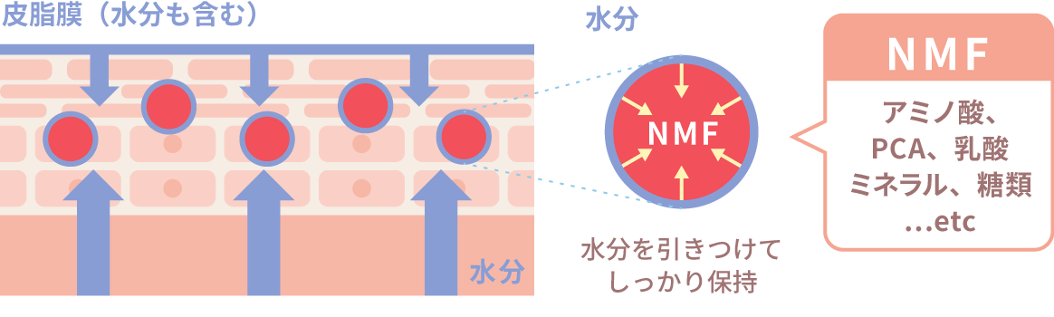 元々肌に備わっている成分で、皮脂膜や真皮にある水分を引き付けて角層にうるおいを与え、肌を鮮やかにイキイキと見せる機能を持っています。