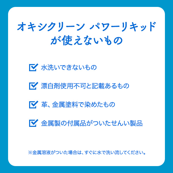 ※生地が傷んだり色落ちするおそれがあるため、30分以上の漬けおきは避けてください。