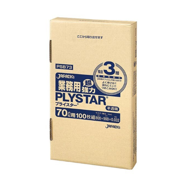 業務用プライスター 複合3層 BOXタイプ 70Lは、幅800mm×縦900mm、厚み0.032mmのゴミ袋です。