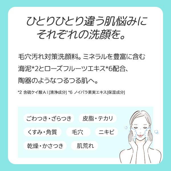 Wクレイパウダー*1、2のクリーミーな泡が余分な皮脂や毛穴の詰まりをしっかりと洗い落とし、毎日をすこやかに保ちます。
