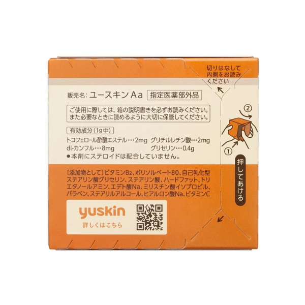 トコフェロール酢酸エステル2mg、グリチルレチン酸2mg、dl-カンフル8mg、グリセリン0.4g●添加物として…ビタミンB2、ポリソルベート80、自己乳化型ステアリン酸グリセリン、ステアリン酸、ハードファット、トリエタノールアミン、エデト酸Na、ミリスチン酸イソプロピル、パラベン、ステアリルアルコール、ヒアルロン酸Na、ビタミンC