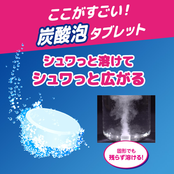 成分 ジクロロイソシアヌル酸塩、発泡剤(重曹、リンゴ酸)、界面活性剤(アルファスルホ脂肪酸エステルナトリウム)、賦形剤(グルコース)、安定化剤