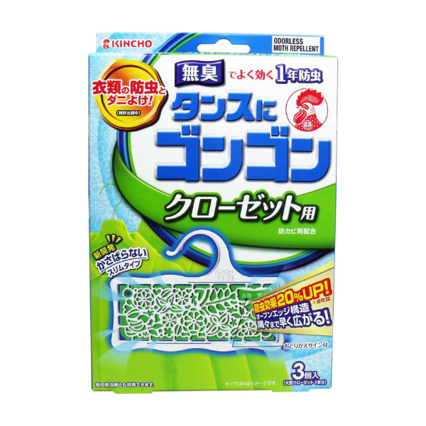 KINCHO タンスにゴンゴン アロマ クローゼット用 ライムソープの香り 1年防虫 3個入