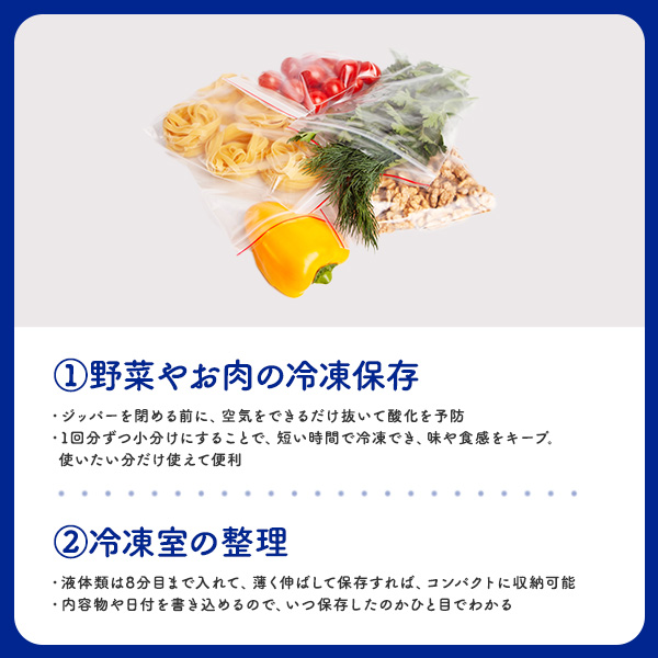 しっかり密封、しっかり保存。安心のフリーザーバッグ!