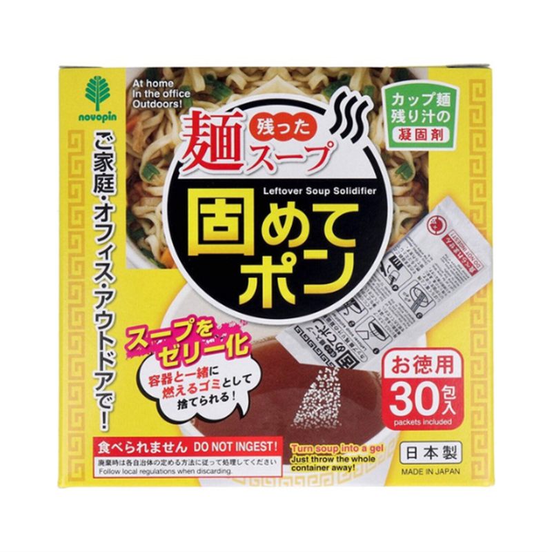 残ったカップ麺スープの処理に困っていませんか?「紀陽除虫菊 残った麺スープ 固めてポン お徳用 30包入」は、スープをゼリー化して、燃えるゴミとして簡単に捨てられる凝固剤です。