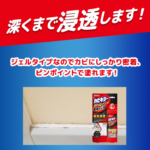 「ジョンソン カビキラーPRO 最強ジェル 100g」は、カビキラー史上最高濃度*1のジェルで、頑固なカビを徹底除去します。