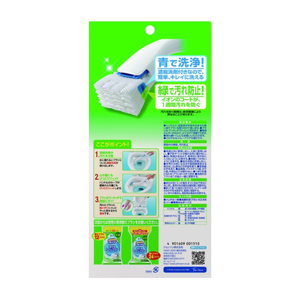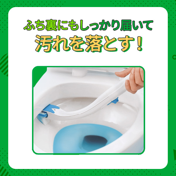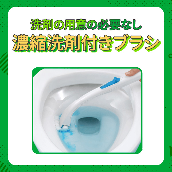 濃縮洗剤付きブラシがフチ裏の汚れまでしっかり落とし、使用後はトイレに流すだけで処理が完了します。