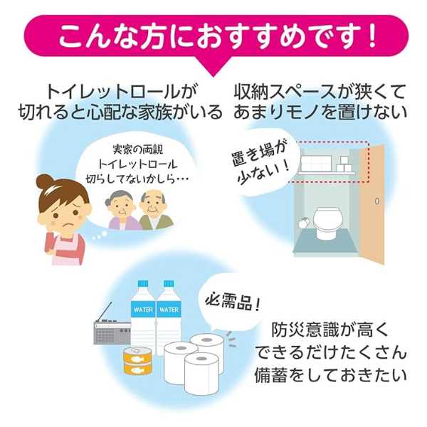 12ロールで24ロール分の長さを実現し、省スペースで使い勝手抜群です。