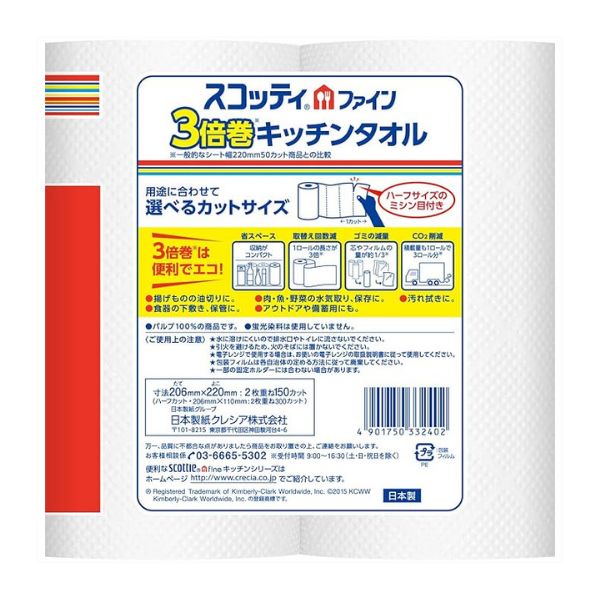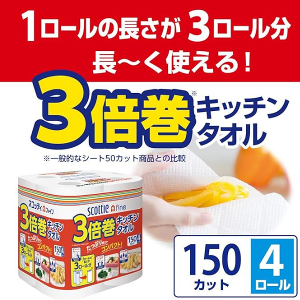スコッティファイン 3倍巻き キッチンタオル 4ロール [キッチンペーパー]