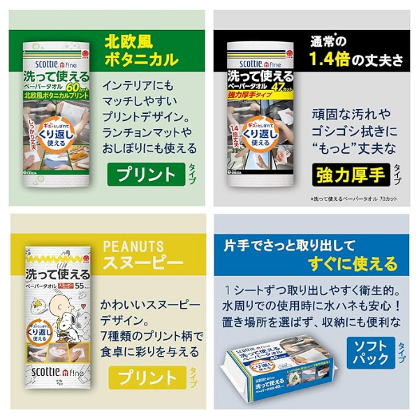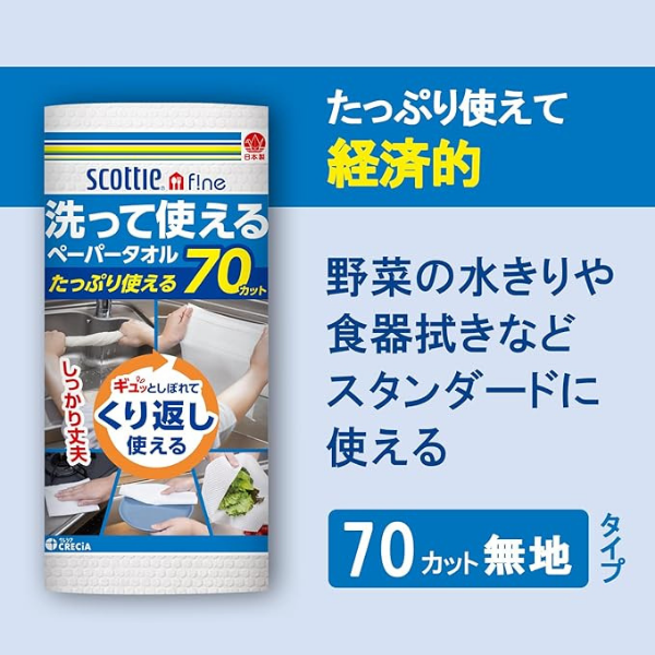 スコッティファイン 洗って使えるペーパータオル 70カット 4ロール