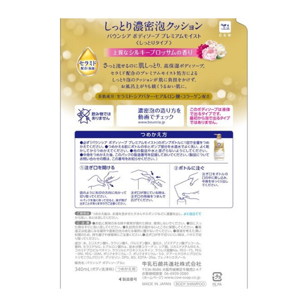 牛乳石鹸 バウンシア ボディソープ プレミアムモイスト 詰替用 340mL