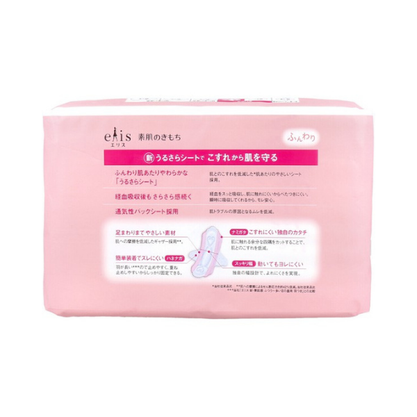 「エリス elis 素肌のきもち 多い昼用 羽つき 23cm」は、肌にやさしい「うるさらシート」を採用し、こすれを低減。