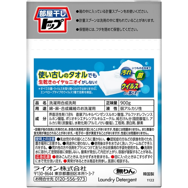 ライオン LION 部屋干しトップ 除菌EX 本体 900g [衣料用粉末洗剤]