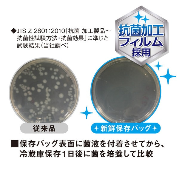 鮮度を守る秘密兵器、厚手抗菌フィルム採用。