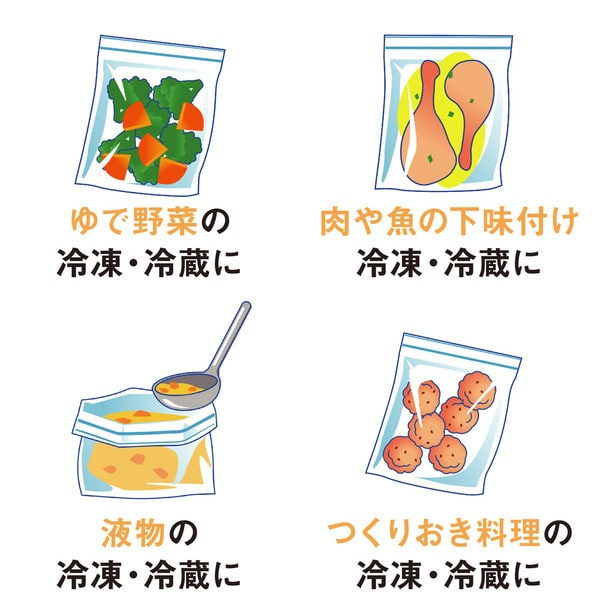 ガイドライン付きダブルジッパーで、簡単にしっかりと密閉でき、冷蔵時には野菜の鮮度を保持、冷凍時には食材の品質を守ります。