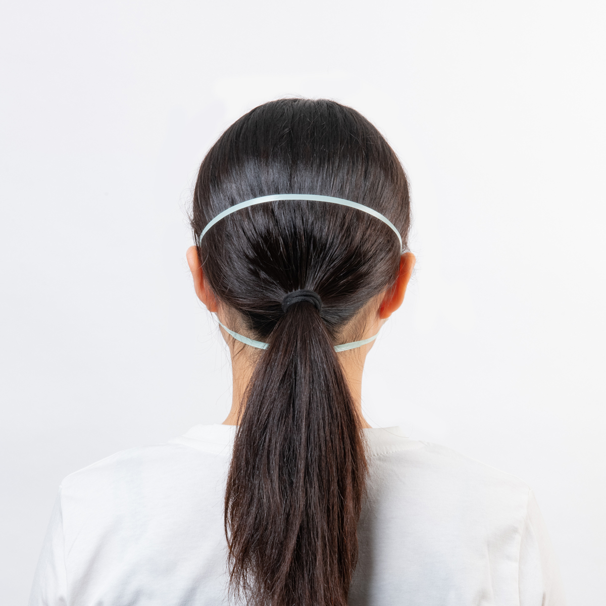 ■耳に負担をかけないよう、頭掛けタイプのゴムを採用しました。