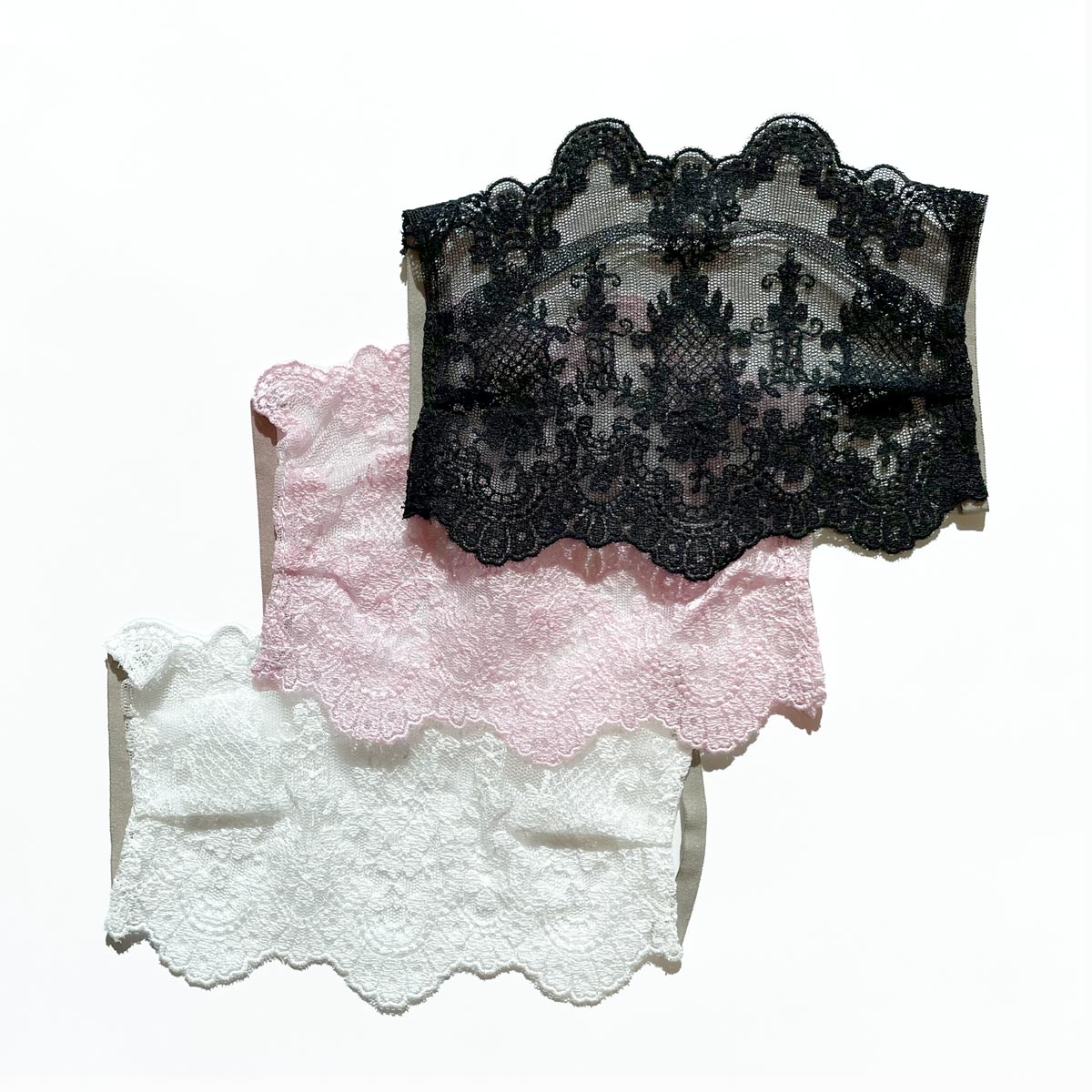 レースの柄が表面に来るように、ゴムひもにマスクを