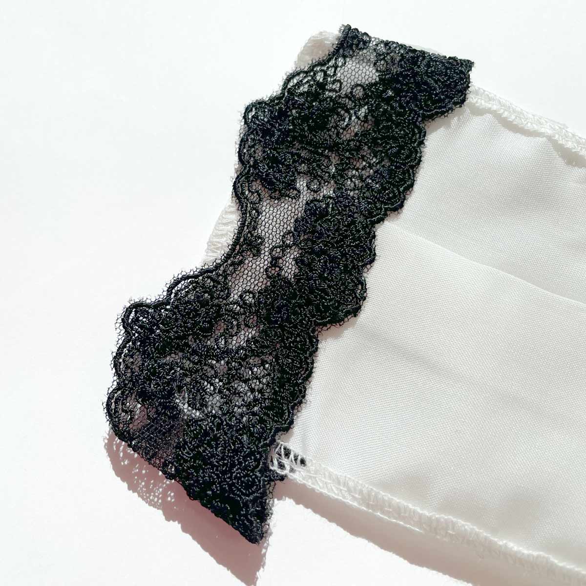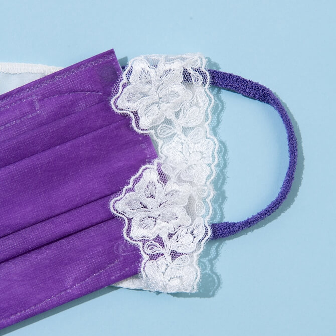 レースの柄が表面に来るように、ゴムひもにマスクを