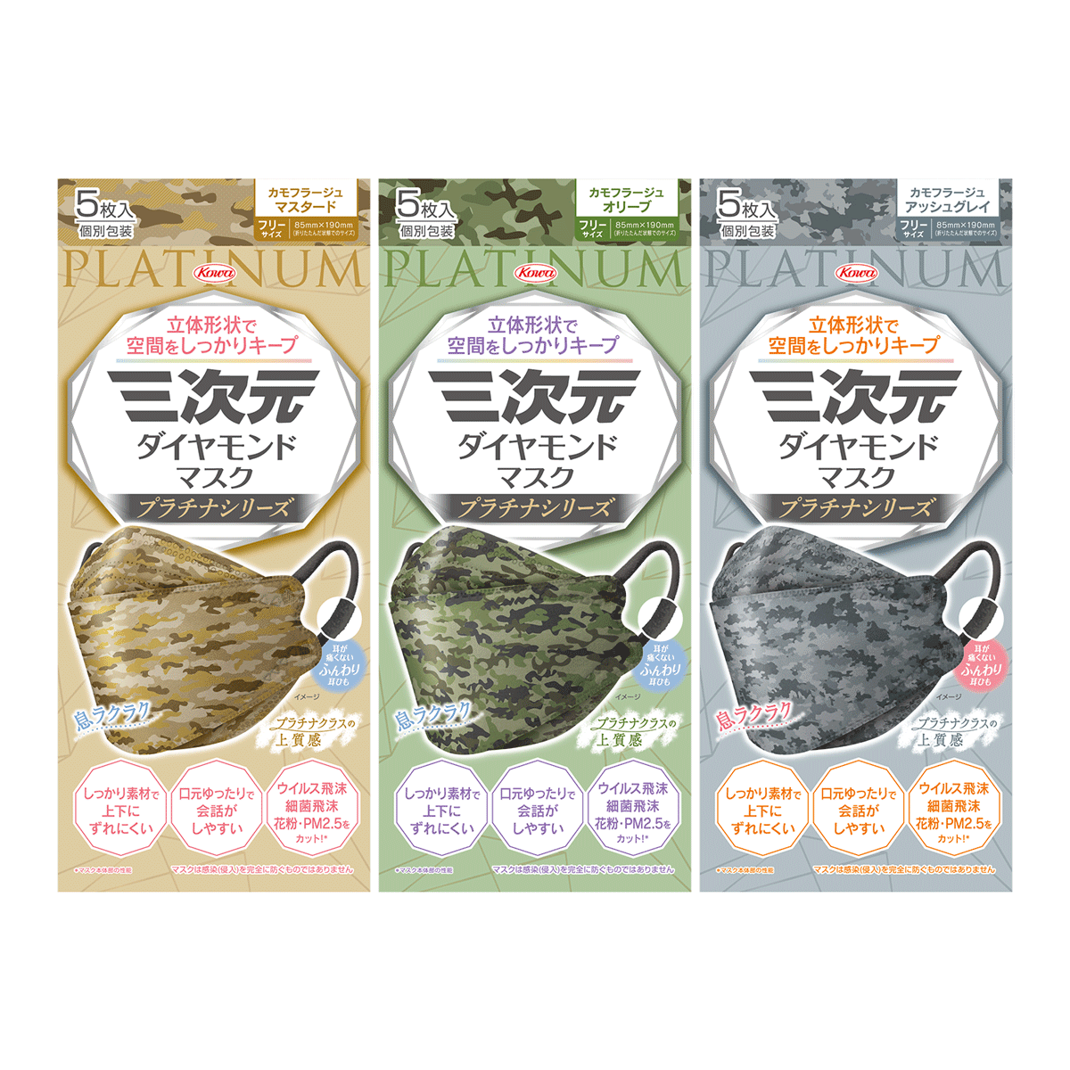三次元ダイヤモンドマスク プラチナシリーズ カモフラージュ 5枚入