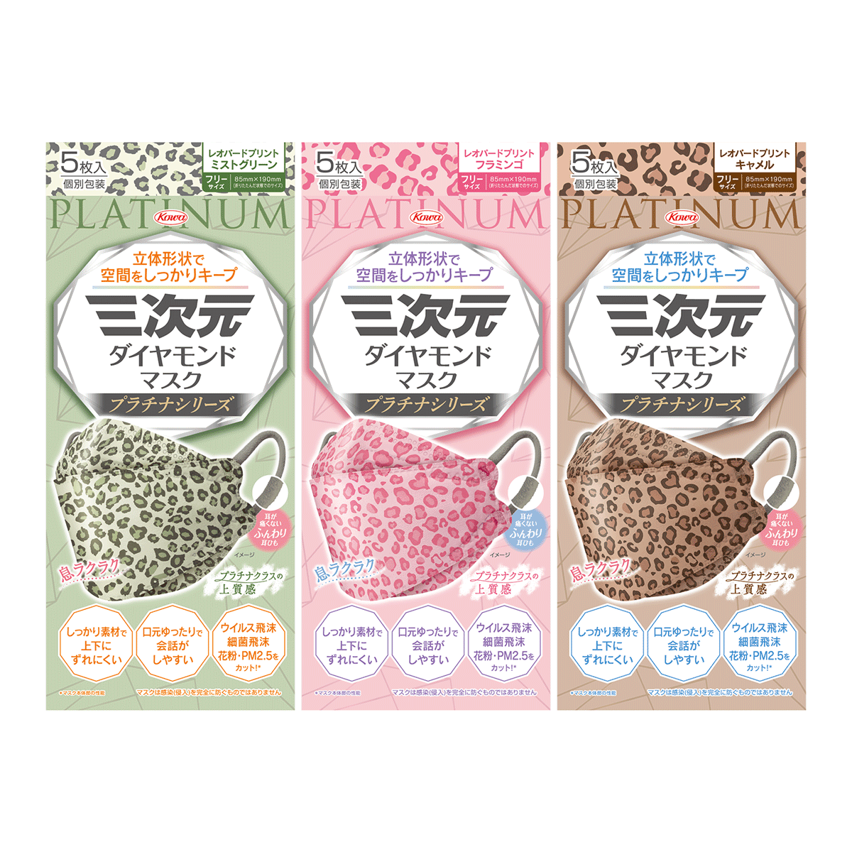 三次元ダイヤモンドマスク プラチナシリーズ レオパード 5枚入