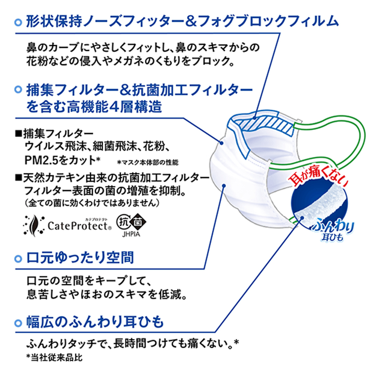 超細密フィルター内蔵でウイルス 飛沫、細菌飛沫、花粉、PM2.5をカット※