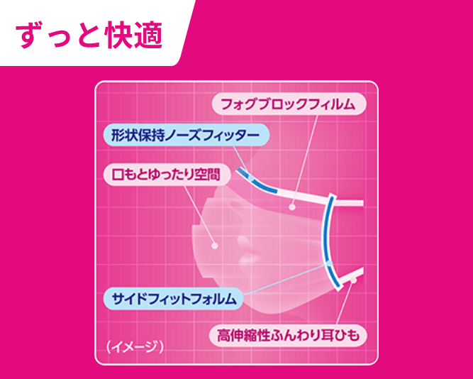 形状保持ノーズフィッターとサイドフィットフォルムがスキマをブロック