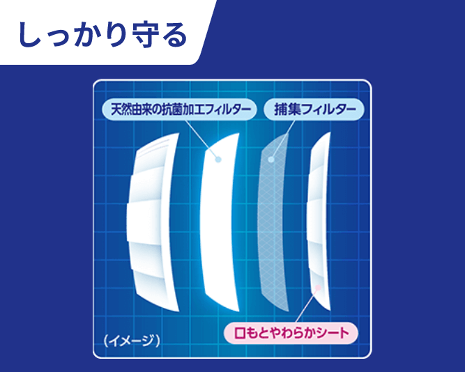 超細密フィルター内蔵でウイルス 飛沫、細菌飛沫、花粉、PM2.5をカット※