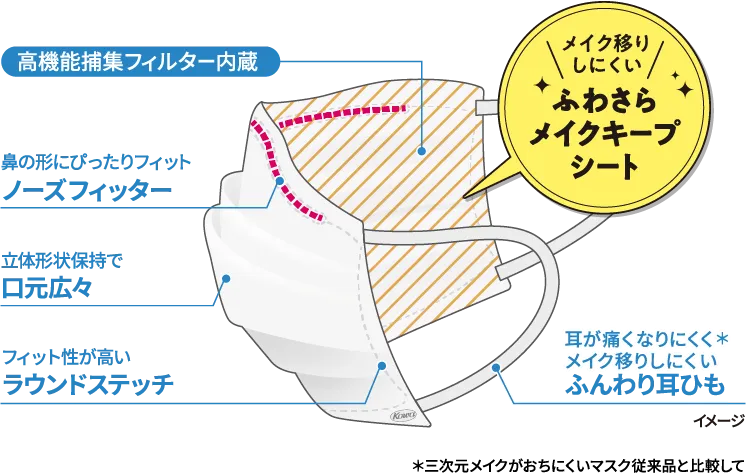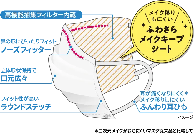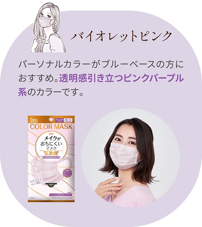 マスクの内側にも付きにくい。質感がふわさらで気持ちいい。