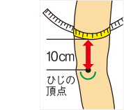 ひじの頂点から10㎝上の周囲を目安に測ってください。